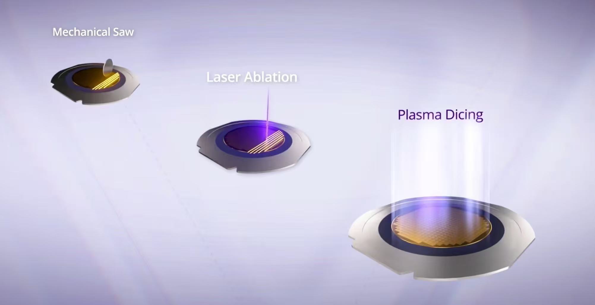 Il wafer dicing è la fase finale del processo di produzione dei semiconduttori, che separa i wafer di silicio in singoli chip (chiamati anche matrici). I metodi tradizionali utilizzano lame diamantate o laser per tagliare lungo le vie di cubettatura tra i trucioli, separandoli dal wafer. La cubettatura al plasma utilizza un processo di incisione a secco per incidere il materiale nelle vie di cubettatura attraverso il plasma al fluoro per ottenere l'effetto di separazione. Con il progresso della tecnologia dei semiconduttori, il mercato richiede sempre più chip più piccoli, più sottili e più complessi. La cubettatura al plasma sta gradualmente sostituendo le tradizionali lame diamantate e le soluzioni laser perché può migliorare la resa, la capacità produttiva e la flessibilità di progettazione, diventando la prima scelta dell’industria dei semiconduttori.