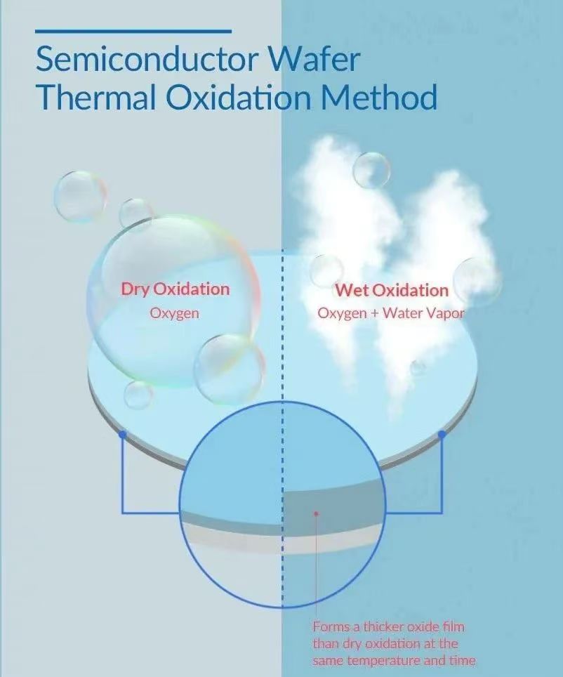 L'ossidazione a umido funziona esponendo i wafer di silicio a vapore acqueo ad alta temperatura, che innesca una reazione chimica tra il silicio e il vapore per formare biossido di silicio (SiO₂). Questo processo produce strati di ossido con bassa uniformità e densità e produce sottoprodotti indesiderati come H₂, che tipicamente non vengono utilizzati nel processo di nucleo. Questo perché la velocità di crescita del film di ossido è più rapida poiché la reattività del vapore acqueo è superiore a quella dell'ossigeno puro. Pertanto, l'ossidazione a umido solitamente non viene utilizzata nei processi principali della produzione di semiconduttori.