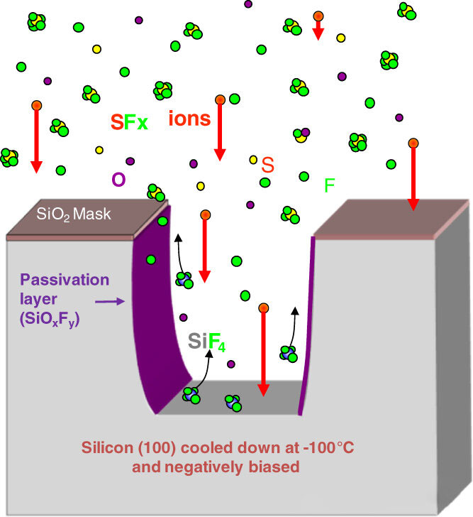 L'incisione a secco è tipicamente un processo che combina azioni fisiche e chimiche, dove il bombardamento ionico è una tecnica di incisione fisica cruciale. Durante l'attacco, l'angolo di incidenza e la distribuzione dell'energia degli ioni possono essere irregolari.