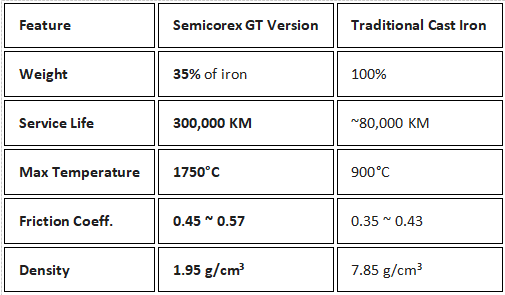 Potenza frenante: con un coefficiente di attrito più elevato e più stabile (0,45–0,57), questi freni possono ridurre gli spazi di frenata fino al 30%.