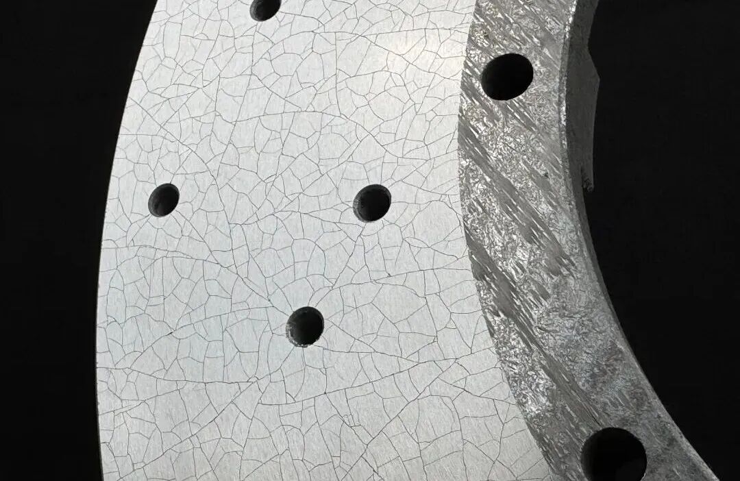 1) Dischi freno carboceramici CCBsono ricoperti con rivestimento SiC sulla loro superficie, presentando una superficie lucida e sottili crepe.
