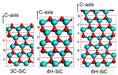Naturalmente, il materiale SiC non è composto da un singolo tetraedro di un atomo di Si e un atomo di C, ma da innumerevoli atomi di Si e C. Un gran numero di atomi di Si e C formano doppi strati atomici ondulati (uno strato di atomi di C e uno strato di atomi di Si) e numerosi strati atomici doppi si impilano per formare cristalli di SiC. A causa dei cambiamenti periodici che si verificano durante il processo di impilamento dei doppi strati atomici di Si-C, esistono attualmente più di 200 diverse strutture cristalline con disposizioni distinte. Attualmente, le forme cristalline più comuni nelle applicazioni pratiche sono 3C-SiC, 4H-SiC e 6H-SiC.