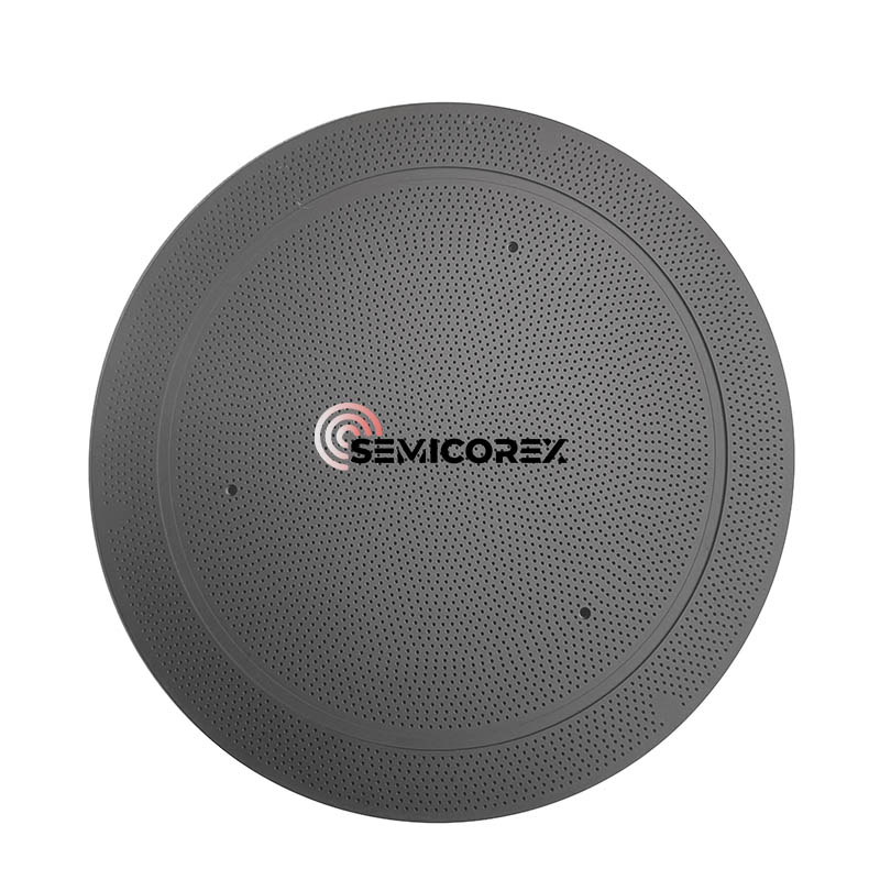 Nelle tecniche di deposizione che non impiegano pressione, come la deposizione di strati atomici (ALD), la deposizione di vapore chimico (CVD) e la deposizione di vapore fisico (PVD) per film molto sottili, i requisiti principali sono una distribuzione uniforme della temperatura e una stabilità superficiale. L'unicità del nostro design del nostro suscettore sta nel fatto che incorpora un substrato poroso di alta purezza che gli consente di funzionare efficacemente in condizioni di vuoto o quasi Vacuum riducendo così lo stress termico e fornendo un trasferimento di energia uniforme sulla superficie del wafer.
