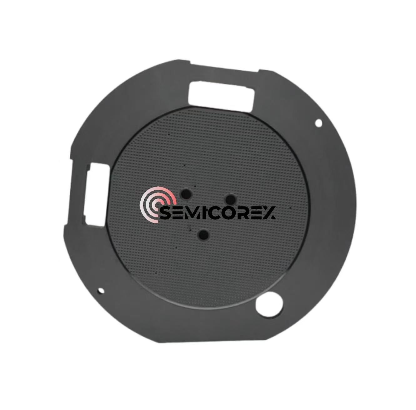 Il materiale ceramico SiC ha resistenza alle alte temperature e mantiene la sua stabilità strutturale in ambienti ad alta temperatura. La sua eccellente conduttività termica gli consente di dissipare rapidamente il calore generato durante l'aspirazione, evitando il surriscaldamento del pezzo. L'eccezionale durezza del materiale lo rende adatto alla presa di pezzi ruvidi o duri. Inoltre, l'inerzia chimica del materiale ceramico SiC lo rende resistente alla corrosione da parte di acidi forti, alcali forti e solventi organici. La bassa prestazione di precipitazione delle impurità di questo materiale evita la contaminazione da impurità e prolunga il normale tempo di funzionamento dell'apparecchiatura, soddisfacendo i requisiti di ultra-pulizia dell'industria dei semiconduttori.