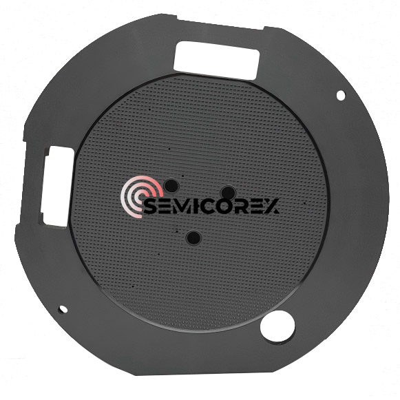 Il corpo dei mandrini a vuoto Wafer è realizzato incarburo di silicio sinterizzatoche è prodotto ad una densità estremamente elevata e ha tutte le caratteristiche meccaniche e termiche adeguate per essere utilizzato nei dispositivi a semiconduttore. Rispetto ad altri materiali standard per mandrini a vuoto, come le leghe di alluminio e la ceramica, il SiC denso offre rigidità e proprietà dimensionalmente stabili significativamente maggiori.